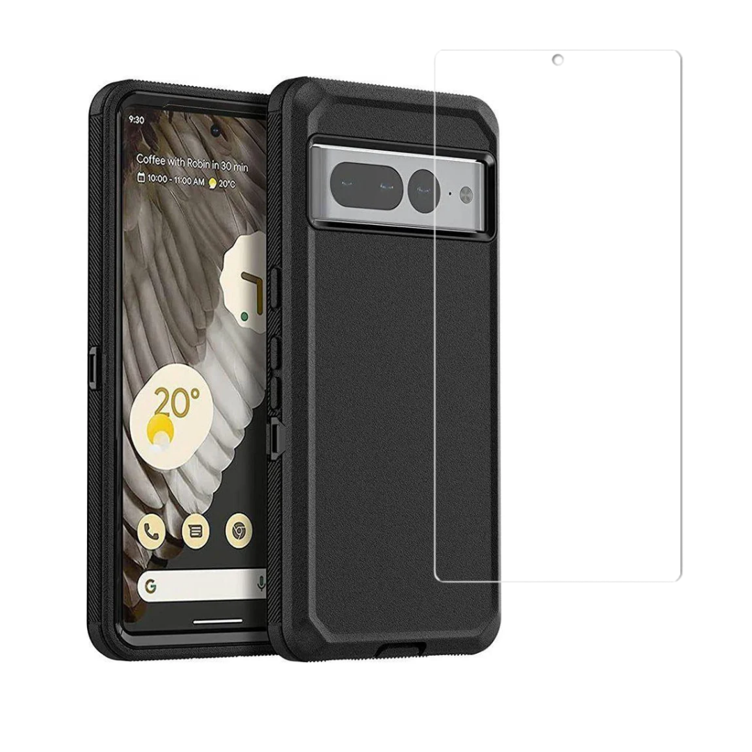 Entronix Bundle Compatible with Pixel 7 Pro - Heavy Duty Case & 1 Clear Screen Protector